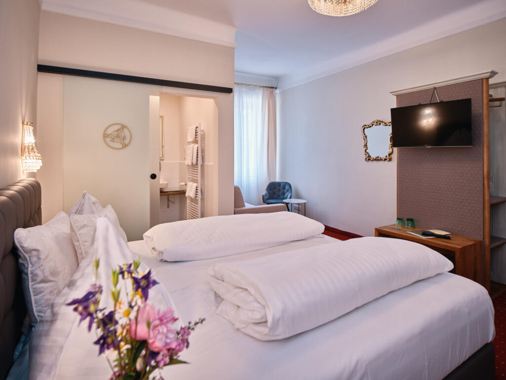 Insgesamt bieten wir 45 Zimmer in drei verschiedenen Kategorien, welche laufend und behutsam renoviert werden.